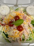 Artichoke heart, roasted red pepper, black olives, Fontinella cheese, lettuce, tomatoes, and onion.