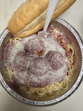 Spaghetti, breaded chicken, marinara sauce, mozzarella, or provolone cheese.