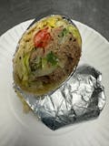 Mozzarella or provolone cheeses, tomatoes, black olives, onion, gyro meat, fresh garlic, feta cheese, and white garlic sauce.